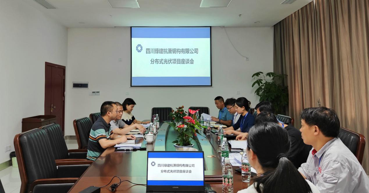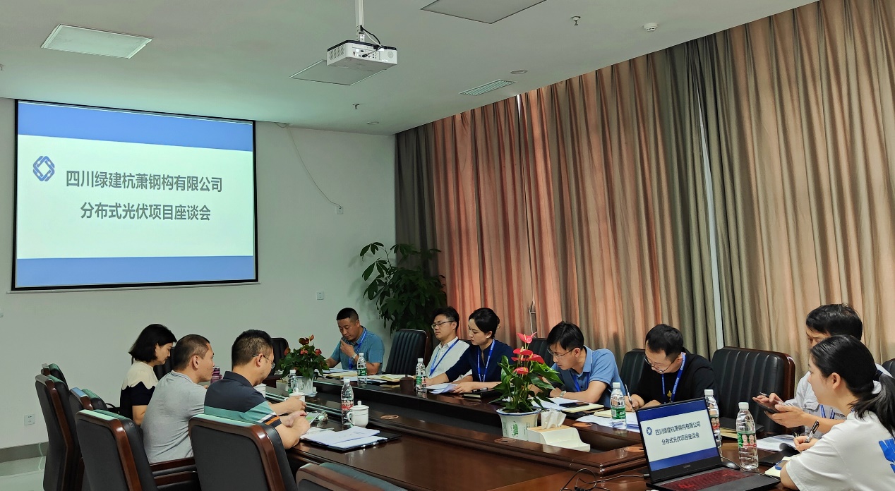 2022年6月30日上午,四川綠建杭蕭鋼構(gòu)有限公司(以下簡稱:綠建杭蕭)四川省能源投資集團(tuán)有限責(zé)任公司相關(guān)負(fù)責(zé)人共同召開分布式光伏項目座談會。綠建杭蕭總經(jīng)理古敏同志攜領(lǐng)導(dǎo)班子與相關(guān)部門負(fù)責(zé)人參加會議。